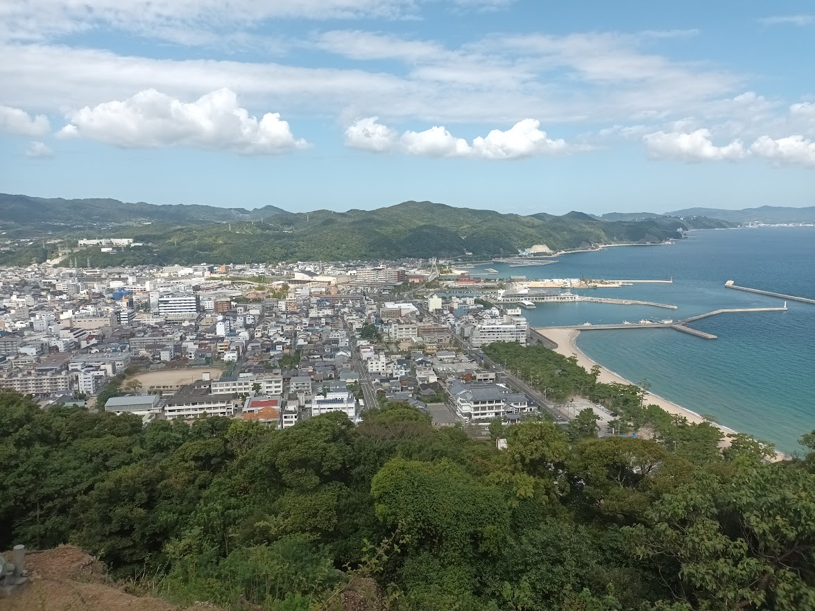 Direkt am Rande des Stadtzentrums liegt der Ohama Beach, einer der schönsten Strände, die ich in Japan besucht habe. Von dort ist es nur ein kleiner Spaziergang durch den angrenzenden Mikumayama Park hinauf zu den Überresten der Burg, von wo aus man einen gewaltigen Ausblick auf die Stadt, das Meer und die umliegende Landschaft aus tiefgrünen Hügeln hat.