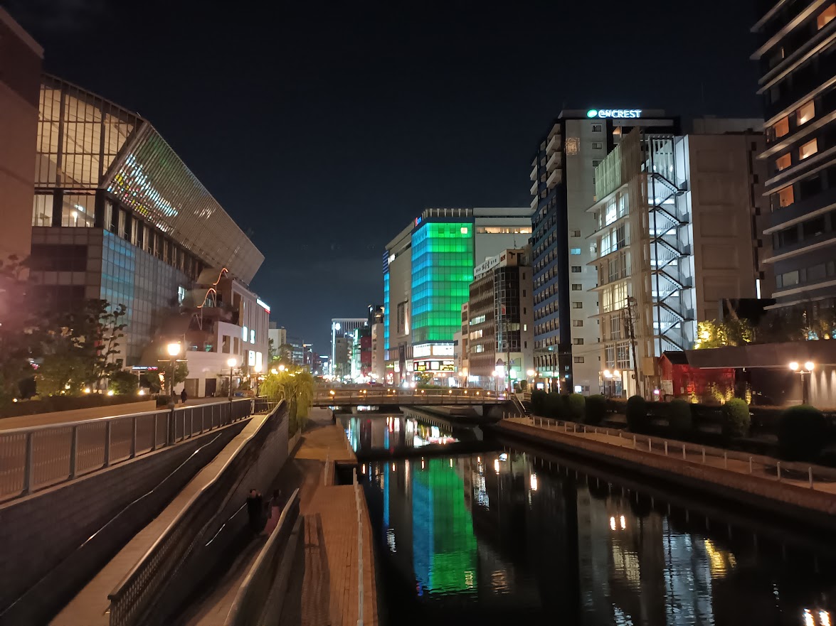 Am anderen Ende von Kyushu, aber dank des schnellen Shinkansen nur gut eineinhalb Stunden Zugfahrt entfernt, befindet sich im Norden der Insel die Stadt Fukuoka. Sie ist deutlich größer als Kagoshima, aber immer noch überschaubarer als Tokio oder Osaka. Auch sie ist schön am Meer gelegen, und man kann mit der Fähre in wenigen Stunden in Busan in Südkorea sein. Fukuoka bildet für viele Reisende die erste oder letzte Station auf ihrer Reise durch Japan. Ich nutzte meine Zeit hier vor allem zum Shoppen, da es hier zahlreiche große Einkaufszentren gibt. Zugegeben gibt es dafür auch andere, vermutlich noch bessere Orte in Japan, aber das wohl größte Einkaufszentrum der Stadt, das Canal City Hakata, ist schon etwas Besonderes: Ein fast zweihundert Meter langer Kanal fließt quer durch die Shoppingmall und verschafft ihr eine ganz besondere Atmosphäre. Ein abendlicher Spaziergang an der Hafenpromenade und durch die hell beleuchtete Innenstadt entlang des Naka-Flusses ist definitiv ein Erlebnis, besonders weil man diesen Anblick ohne die sonst üblichen Touristenhorden genießen kann. Ein Abendessen an einem der Yatai-Essensstände, die sich hier entlang der Straßen des Downtown tummeln, gehört zu den Erfahrungen, die man in Fukuoka gemacht haben sollte. Anders als in den Ramen-Shops oder Touristenrestaurants kam ich hier einfach mit Einheimischen ins Gespräch, und ein bisschen Sozialisieren gehört hier, anders als an den meisten Orten in Japan, mit dazu.