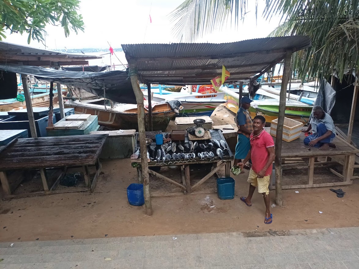 In Galle kommen wir am quirligen Busbahnhof direkt neben der Altstadt gelegen an. Hier herrscht typisch asiatisch reges Treiben aus vielen hupenden Verkehrsteilnehmern und Passanten, dem wir schnell zu entkommen versuchen, und uns über die geschäftige Colombo Main Road zur Küstenpromenade begeben. Von hier hat man schon einen guten Blick auf die alten Festungsmauern des Dutch Fort. Dorthin begeben wir uns als Nächstes, vorbei an einem großen Fischmarkt, mitsamt der passenden Geruchskulisse, auf dem die örtlichen Fischer ihre fangfrische Ware feilbieten.