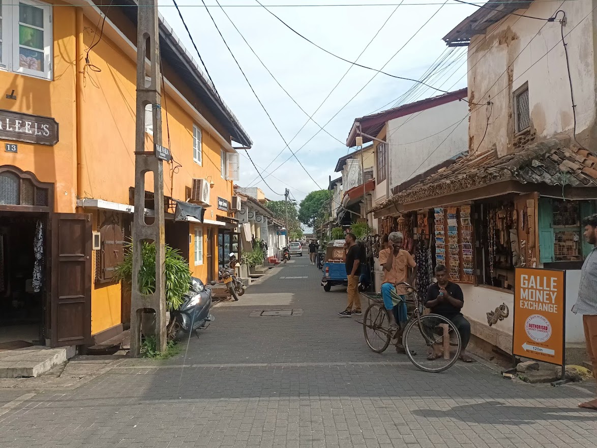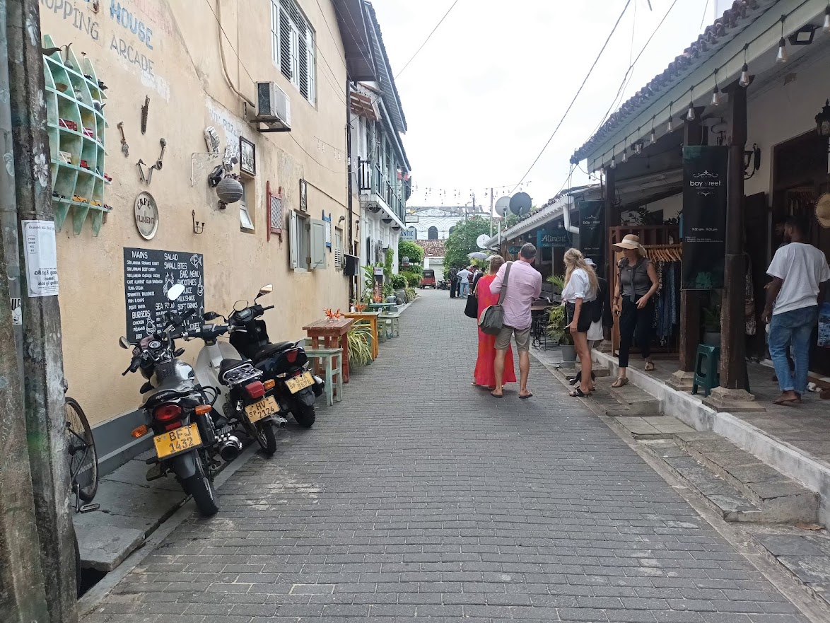 So können wir heute in einer Altstadt herumstreifen, die genauso gut in einer europäischen Stadt am Mittelmeer stehen könnte. Typisch holländische Elemente erspäht mein ungeübtes Auge eher weniger, vielmehr erinnern mich die gepflasterten kleinen Straßen, die von niedrigen, ein- bis zweistöckigen Steinhäusern gesäumt werden, an ein mediterranes Land wie Spanien oder Italien. Dazu trägt aber sicher auch das glühend heiße Wetter bei, das uns immer wieder zwingt, in einem der vielen Restaurants ein kaltes Getränk und etwas klimatisierte Luft zu tanken. Es gibt viele süße kleine Innenhöfe und Säulengänge, die mit üppigen Pflanzen und Korbmöbeln ausgestattet sind. Dazwischen Tuk Tuks und offene Abwassergräben, die das europäische Erscheinungsbild um einen südostasiatischen Aspekt erweitern, der hier natürlich nicht unerwartet ist, aber trotzdem einen interessanten Kontrast bildet. Es fühlt sich hier ganz anders an als viele andere Orte Sri Lankas, vielleicht heimischer, aber trotzdem exotisch. Man kann gut nachvollziehen, warum sich so viele Touristen hierher verirren. Da man sich auf diese hier sehr gut eingestellt hat, gibt es zahlreiche große und kleine Souvenirshops, die man erkunden kann, um nach allerhand mehr oder weniger geschmackvolle Mitbringsel zu stöbern. Von klassischen Magneten, Postkarten und Klamotten bis hin zu großen Buddhastatuen und hölzernen Möbeln, die zumindest in unserem Reisegepäck keinerlei Platz finden würden - es gibt fast nichts, was es nicht gibt. Ein paar der handlicheren Reisepräsente erstehen wir natürlich trotzdem.