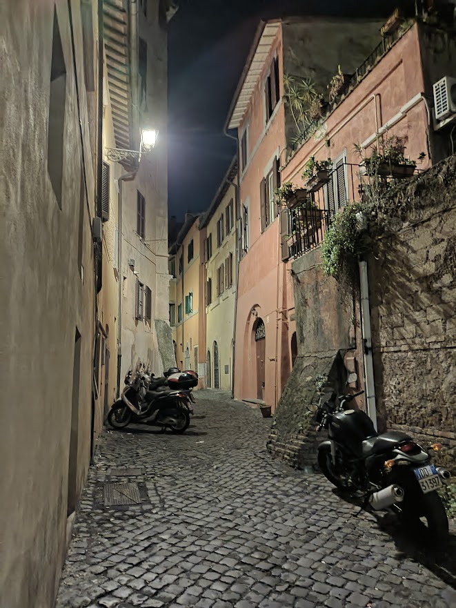Rom wirkt auf mich schon fast wie eine andere Stadt, seit ich das letzte Mal vor gut fünf Jahren hier war. Vielleicht verkläre ich aber auch nur. Es war das erste Corona-Jahr, und ich hatte eigentlich eine Reise nach Übersee geplant, für die ich länger Urlaub bekommen hatte. Durch diverse Reisebeschränkungen und eine unsichere Planungssituation wurde es dann Bella Italia. Das war an sich kein Opfer, denn die Ewige Stadt hatte ich auch noch nie besucht. Ich konnte die berühmten Sehenswürdigkeiten fast alleine bewundern, das Kolosseum hatte geöffnet und man konnte es spontan besuchen. Das Forum Romanum war fast leer, als ich dort hindurch spazierte, sodass man sich fast fühlte, als hätte man die antike Stadt soeben erst entdeckt und wandelte als ihr Erforscher durch die ehrwürdigen Ruinen. Auch in Trastevere war ich damals gewesen, trotz der Pandemie hatten viele Restaurants und Bars geöffnet, und es war ein bisschen was los. Ich traf mich mit einer großen Gruppe Couchsurfer auf dem Piazza Trilussa. Gemeinsam zogen wir durch ein paar Bars, und hatten fast keine Probleme, auch als große Gruppe von über zehn Leuten hier etwas an einem Samstagabend zu finden. Auch damals hatten wir Masken auf, aber nicht wegen Halloween.