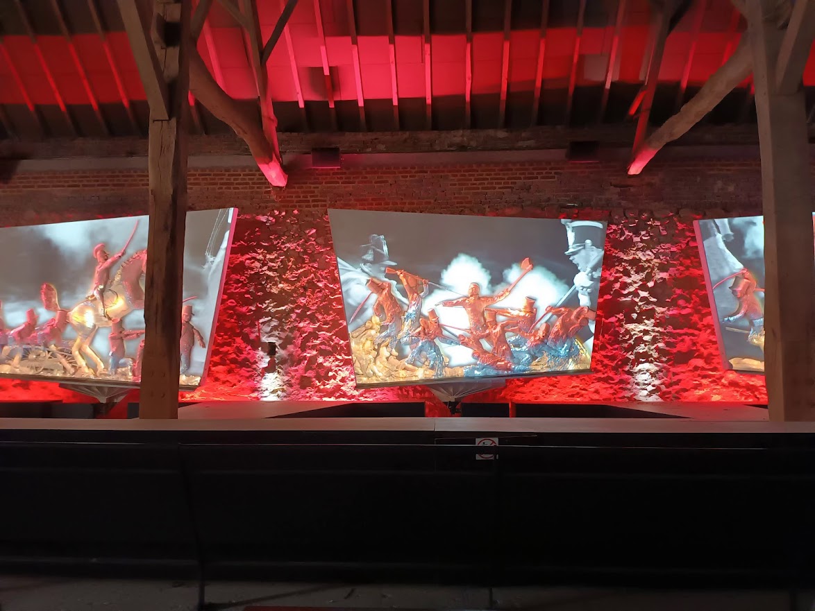 Der informationshungrige Besucher kann auch hier in weiteren Ausstellungen, die vielfach medial aufwendig mit Video- und Lichtinstallationen gestaltet sind, das Geschehen von diesem Tag detailliert nachvollziehen. Eine regelmäßige Filmvorführung in einer ehemaligen Scheune verbindet dramatische Szenen aus der Schlacht mit beweglichen Relief-Tafeln, die in leuchtenden Farben anprojeziert werden. Ein Erzähler verdeutlicht zu schwerer Filmmusik mit tiefer Gottesstimme die Wichtigkeit und historische Bedeutung der Schlacht von Waterloo und die Größe, die ihre Beteiligten gezeigt haben. Es ist schon fast lächerlich überzeichnet, als wäre man auf einer Rekrutierungsveranstaltung und sollte selbst gleich in die britische Armee eingezogen werden. Man erwartet beim Verlassen der Scheune direkt eine Waffe und Uniform in die Hand gedrückt zu bekommen und auf einen LKW gesetzt zu werden, der einen direkt zur Grundausbildung bringt. Da wir uns jedoch in einem Land befinden, das zum Zeitpunkt der Schlacht noch nicht in der heutigen Form existierte, ist das wohl eher unwahrscheinlich, und so wartet nur das Besucherbähnlein, um mich zum Museum zurück zu bringen. Außerdem sind die blutigen Opfer, die Waterloo gefordert hat, wohl eher nicht ins Lächerliche zu ziehen.