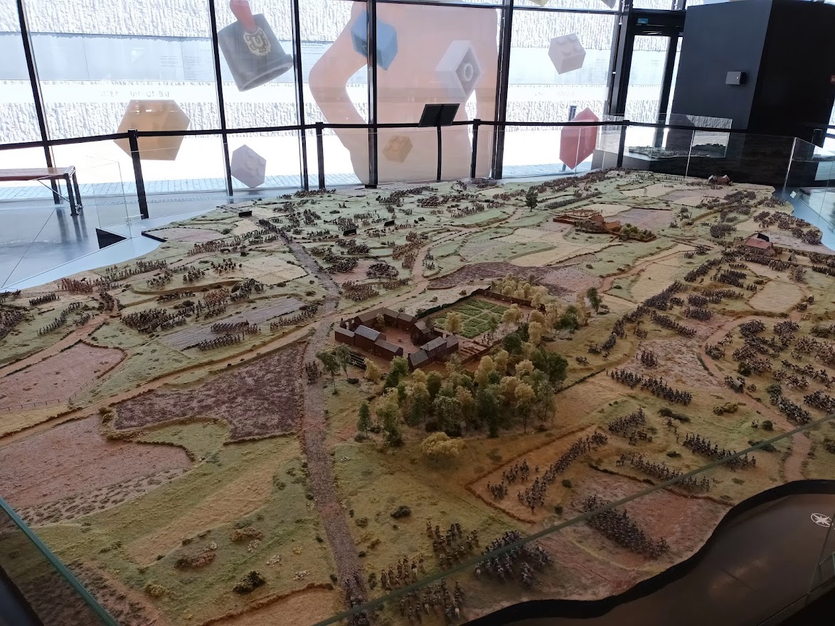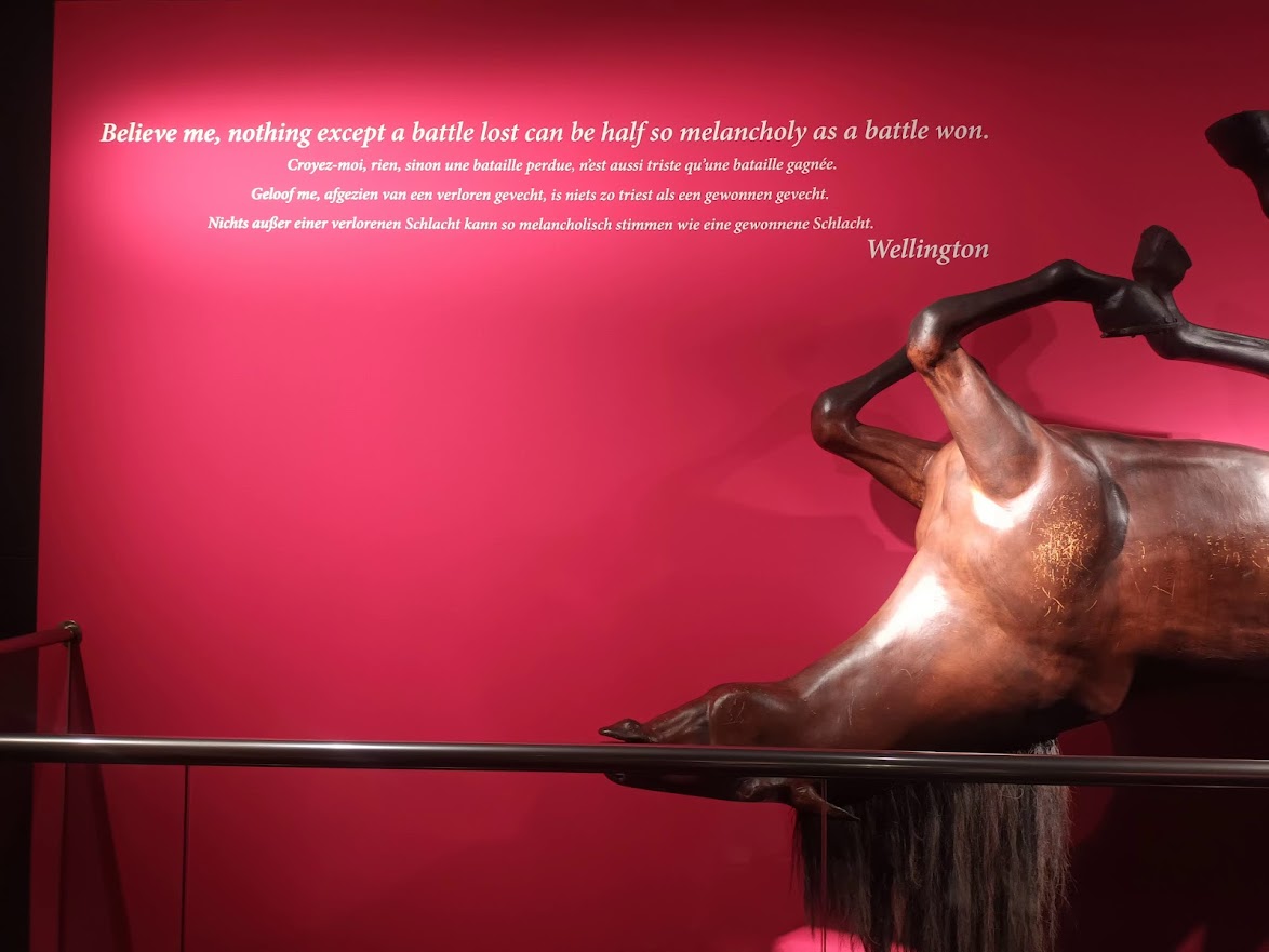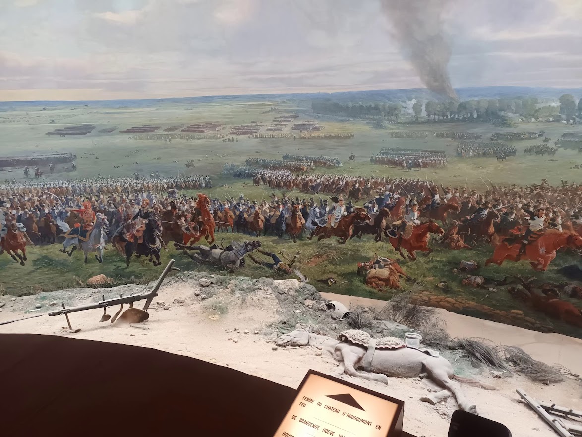 Dort angekommen, beginnt ein Besuch im Besucherzentrum und dem erst zehn Jahre alten Museum, das in einer sehr detaillierten Ausstellung die zugehörige Geschichte erläutert. Hier wird nicht nur die Schlacht selbst, sondern die gesamte Geschichte Napoleons und des französischen Kaiserreiches, angefangen bei der französischen Revolution, erläutert. Weiter geht es mit einer Ausstellung zu den wichtigsten Stationen in Napoleons Karriere sowie seinen größten militärischen Triumphen gegen die gegnerischen europäischen Großmächte, vor allem England, Preußen, Russland und Österreich. Erst danach beginnt die Ausstellung sich dem eigentlichen Hauptthema zu widmen, und das in einer gründlichen Detailtiefe, die einem fast schwindelig werden lässt. Es werden Informationen zu unterschiedlichsten Aspekten präsentiert: Von den kleinsten Details der Uniformen, über das soziale Gefüge der Soldaten und die technische Funktionsweise der verwendeten Waffen, bis hin zur taktischen Aufstellung der beteiligten Armeen. Das lässt das Herz eines Geschichts-Nerds (als den ich mich nicht bezeichnen würde) höher schlagen, aber die meisten normalsterblichen Besucher wohl schnell eher erschöpft zurück. Höhepunkt zum Ende hin bildet ein kurzer 4-D Film, in denen der Zuschauer Napoleon, Wellington und einem jungen französischen Trommler im Schlachtverlauf folgt. Es folgt ein kurzer, deprimierender Abriss zu den Opferzahlen und dem heutigen Stand der Ausgrabungen und historischen Forschung, die natürlich nach wie vor erfolgt und hin und wieder neue Erkenntnisse ans Licht bringt.